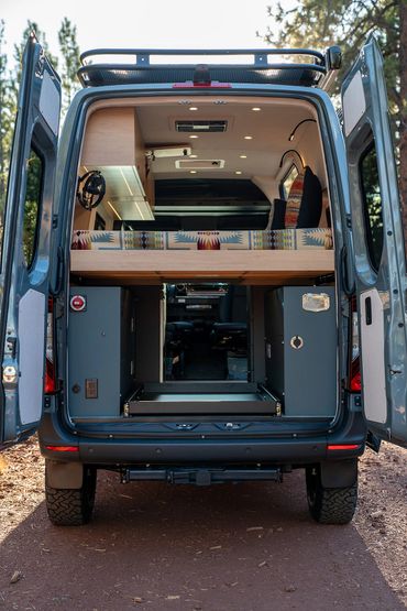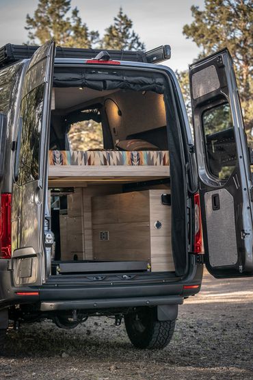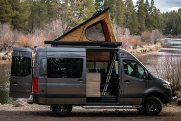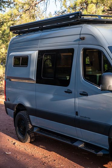 Complete your build by adding exterior gear, upgrading the comfort systems, or expanding your power bank. Whether it be a front bumper swap, and AC unit, or a suspension upgrade we do it all and are happy to add any additional features to your conversion that you'd like. Check out the build estimate feature to see all of the optional add-ons. If you don't see something on there that you'd like, just ask!
