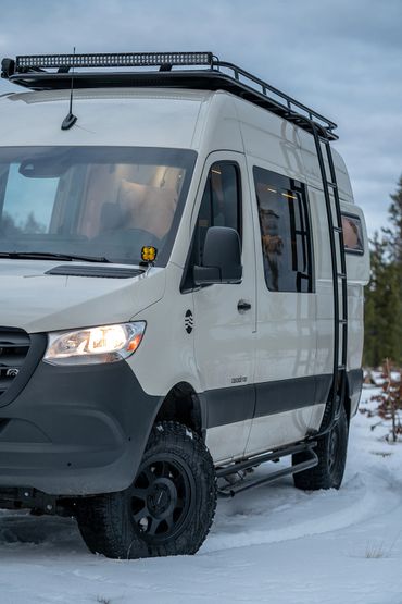 Complete your build by adding exterior gear, upgrading the comfort systems, or expanding your power bank. Whether it be a front bumper swap, and AC unit, or a suspension upgrade we do it all and are happy to add any additional features to your conversion that you'd like. Check out the build estimate feature to see all of the optional add-ons. If you don't see something on there that you'd like, just ask!