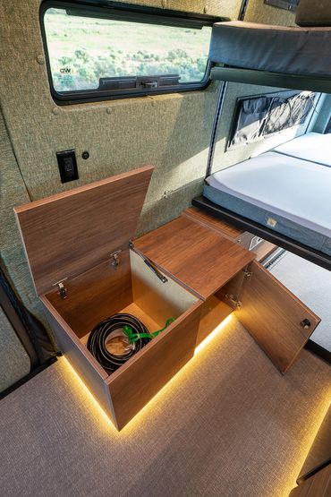 Complete your build by adding exterior gear, upgrading the comfort systems, or expanding your power bank. Whether it be a front bumper swap, and AC unit, or a suspension upgrade we do it all and are happy to add any additional features to your conversion that you'd like. Check out the build estimate feature to see all of the optional add-ons. If you don't see something on there that you'd like, just ask!