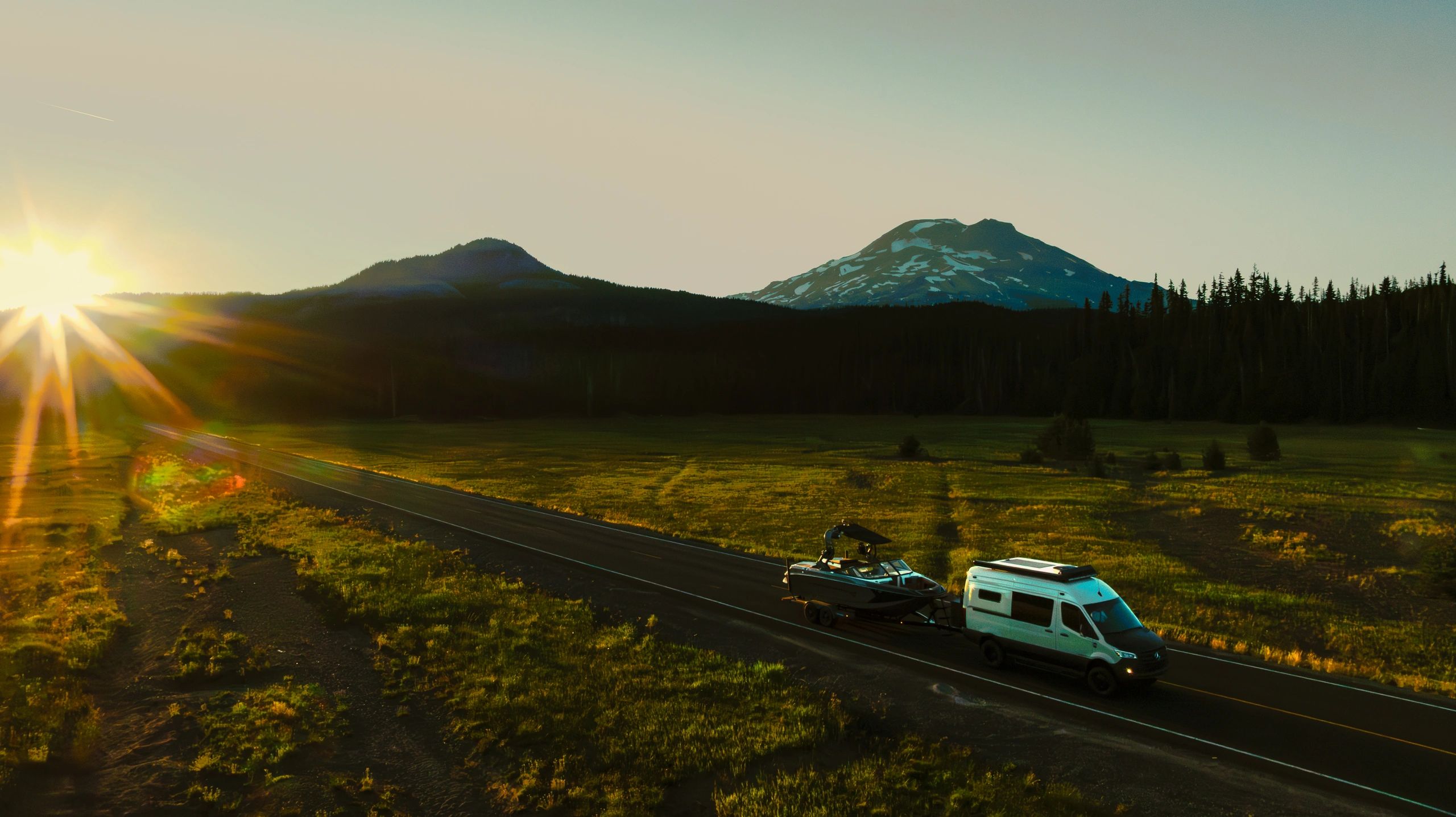 Meet The Skyliner — the ultimate 144" family adventure van. Seats 4, sleeps 4, tows 7K lbs, dual kitchens, hot water, showers in + out, Super Pacific pop-top. Built for gear junkies and road-trip warriors who want it all.
