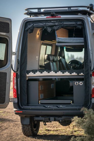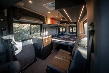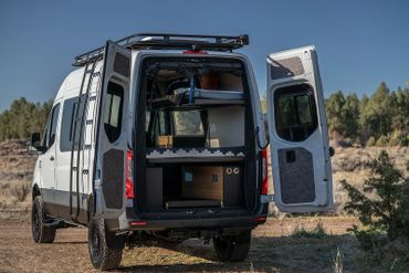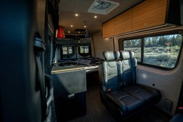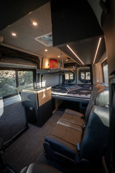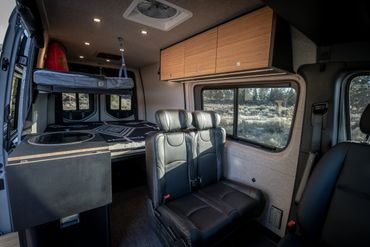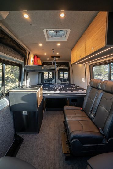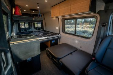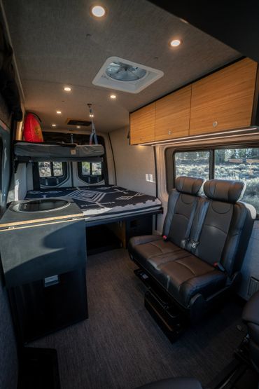 The Pine Drop Series is our most versatile and configurable layout for the 144" Mercedes Sprinter chassis. Ideal for families of four this van is built as a weekend getaway rig. With all the amenities you'd need this van is roadtrip ready for your families needs.